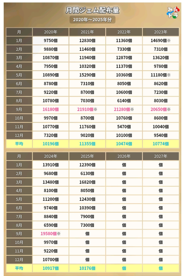 ジェム配布量