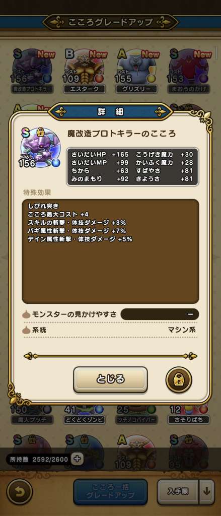 ![]() 闇の覇者 りゅうおうLv99 | ![]() 究極進化 エビプリLv99 | ![]() 魔王 バラモスLv99 | ![]() 暴嵐天 バリゲーンLv99 |