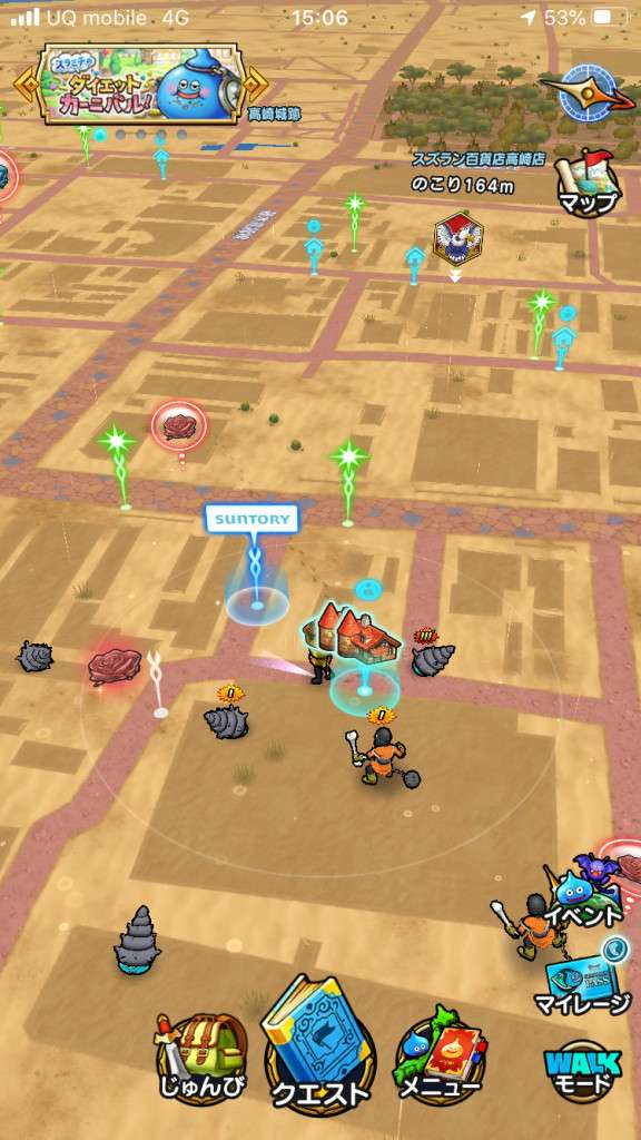 サントリーとドラクエウォークとのコラボが決定しました。ゲーム内では特別なかいふくスポットが登場し、イベントミッションが追加されています。