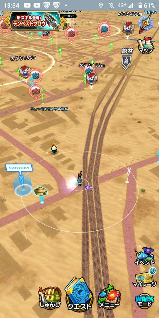 サントリー自販機をタップすることで「キラーベンダーマシン」が出現。夏イベントの「スイカ岩」形式です。また、こころはドロップしません。