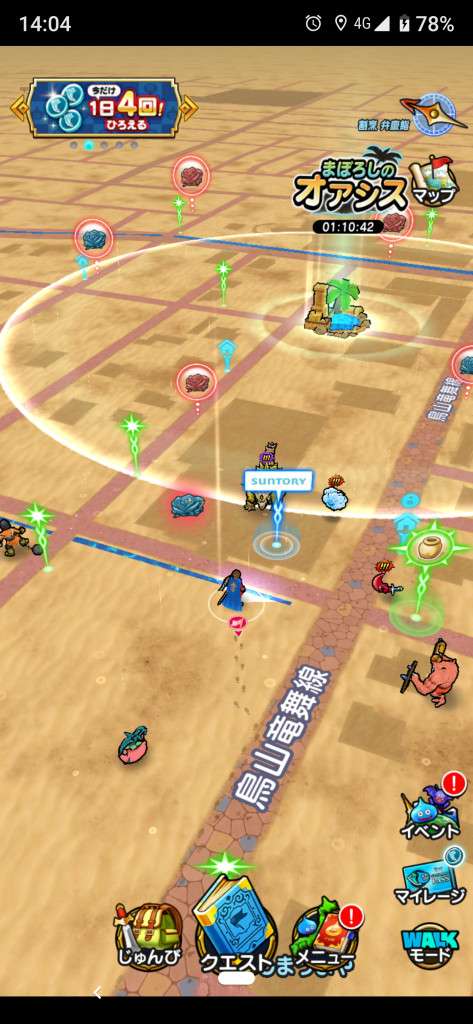 サントリーとドラクエウォークとのコラボが決定しました。ゲーム内では特別なかいふくスポットが登場し、イベントミッションが追加されています。