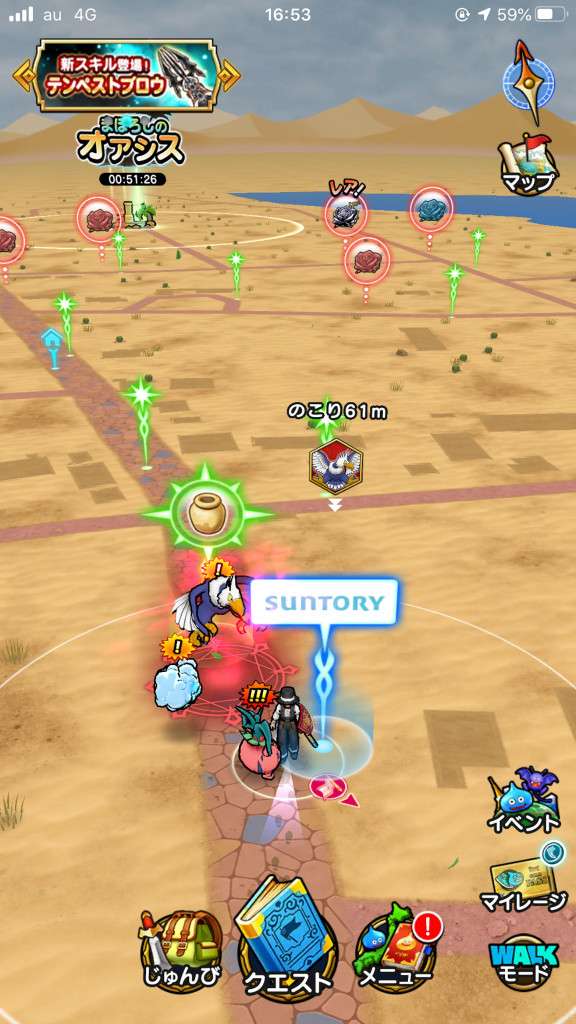 サントリーとドラクエウォークとのコラボが決定しました。ゲーム内では特別なかいふくスポットが登場し、イベントミッションが追加されています。