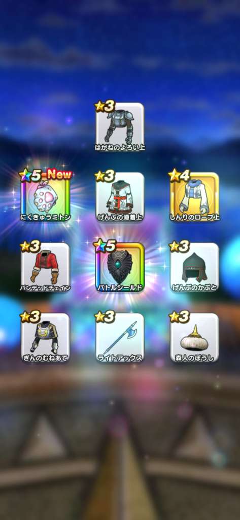 回したら、ピックアップ武器防具はおろか星5すら1つも出ずで、今回のマイレで即当たり。