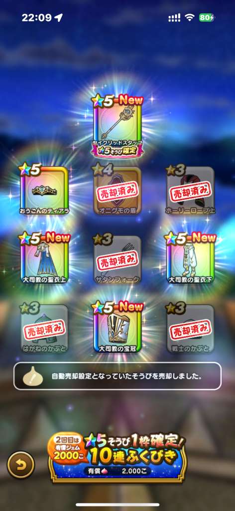 | 永続パッシブ | 僧侶レベル50(かいふく魔力+10) 踊り子レベル50(かいふく魔力+10) 遊び人レベル55(かいふく魔力+5) 賢者レベル90(かいふく魔力+15) スパスタレベル90(かいふく魔力+15) 大神官レベル70(かいふく魔力+30) |