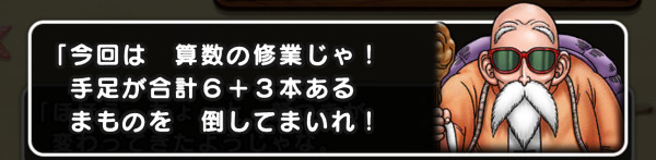 修業アイコンで出現する手足の合計が9になるモンスターと3回バトルして勝利すればクリアです。