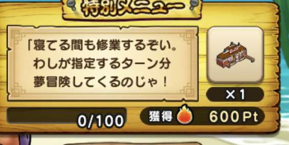 ゆうべはおたのしみでしたね(ドラクエスリープ)で夢冒険を100ターン進めればクリアです。