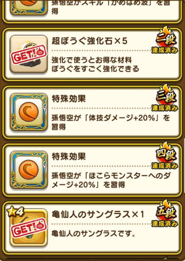 | ハチを倒す修行 | 500pt | 亀仙人の服×1 |