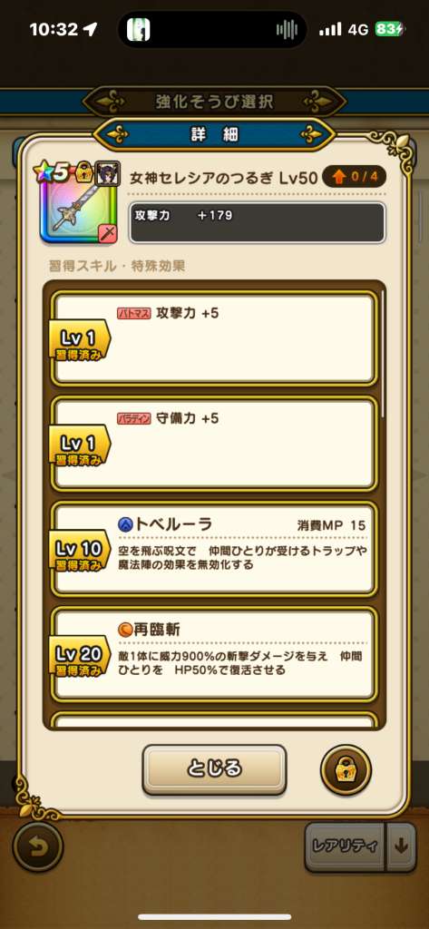 先日錬成終わらせた閃光烈火のツメ、何でこのタイミングでの錬成だったのかと思ったが弱化役に持たせればそこそこ使える。幻惑効果も地味にありがたいし、テンツクのこころも持たせて素敵なダンスで黒龍丸をほぼ完封。その間にレジェから倒せば黒龍丸がギラ弱なのでダメージソースの足しにもなる。
