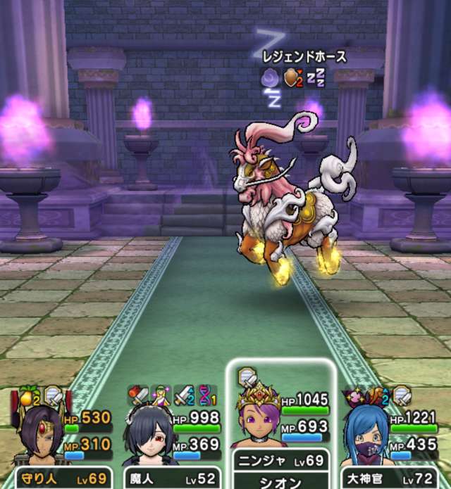 吹き飛ばしがうざい黒竜丸を即キルして、レジェンドホースは眠らせる。