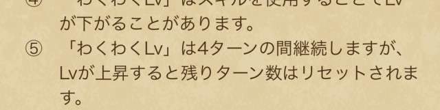 わくわくLv1~3を自身に付与する Lvに応じて一部のスキル効果がUPし 複数の追加効果が発生 わくわくLvはスキル使用時に確率で下がる【いきなり】