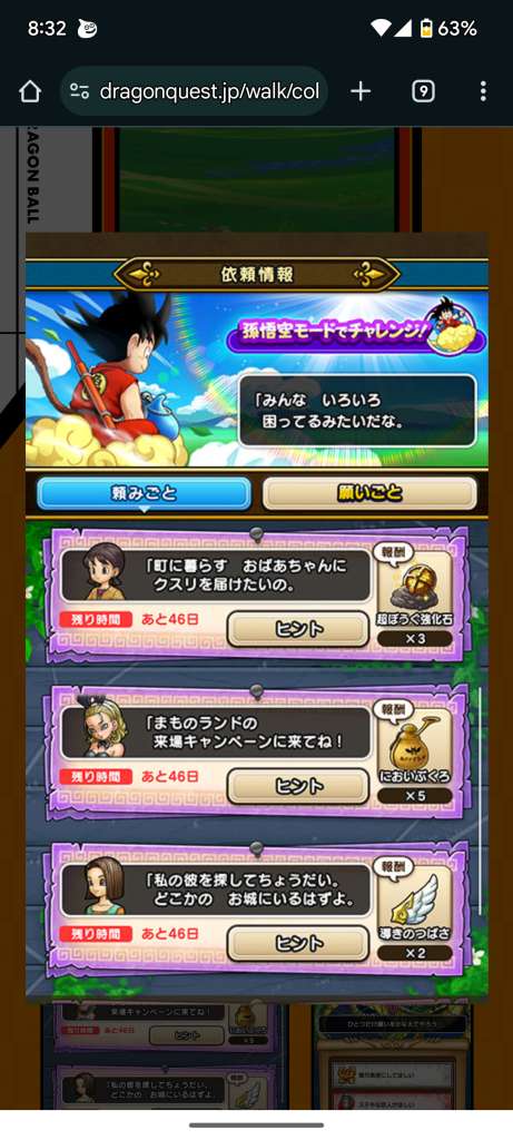 | ミッション内容・報酬 ※「孫悟空モード」の願いごと | |