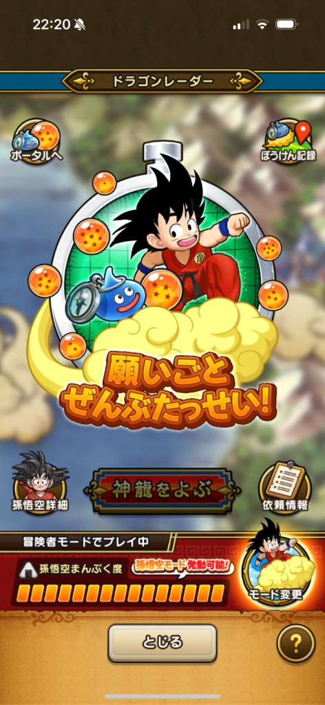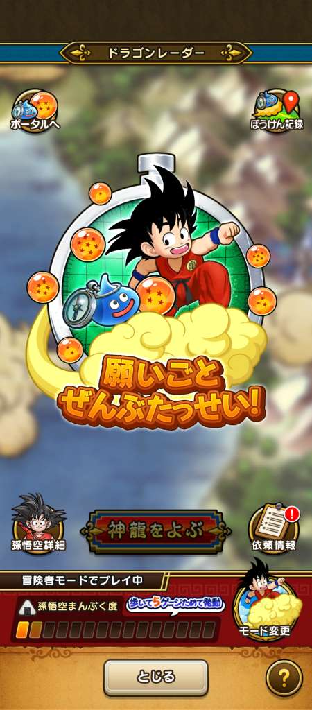 イベント期間中、ドラゴンレーダーから通常の「冒険者モード」→「孫悟空モード」へ切り替えることができます。
