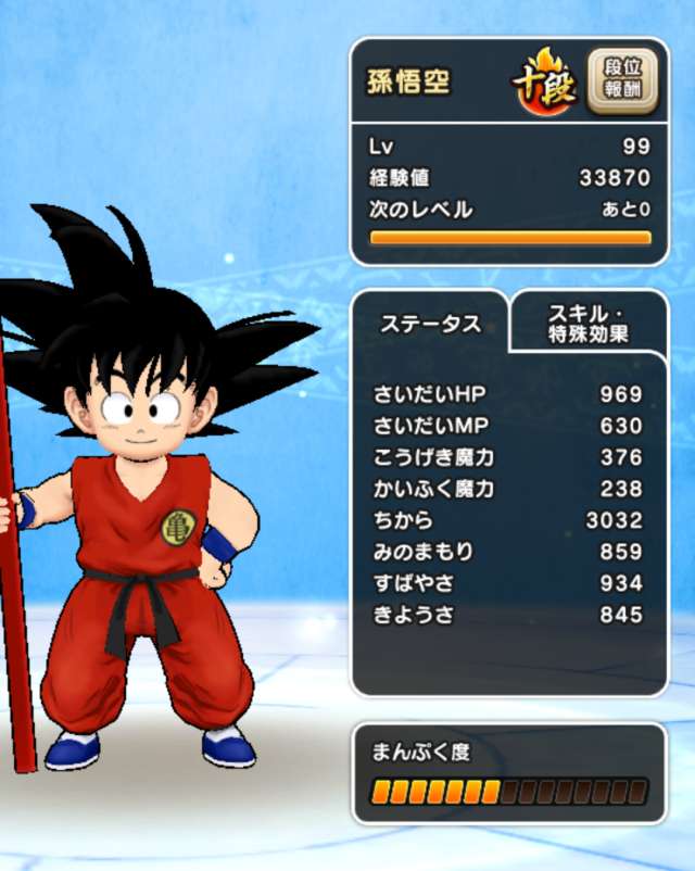 孫悟空のLVが80を越えたあたりで、ツワモノをかめはめ波でワンパンできなくなった。2撃いれる必要がある。
