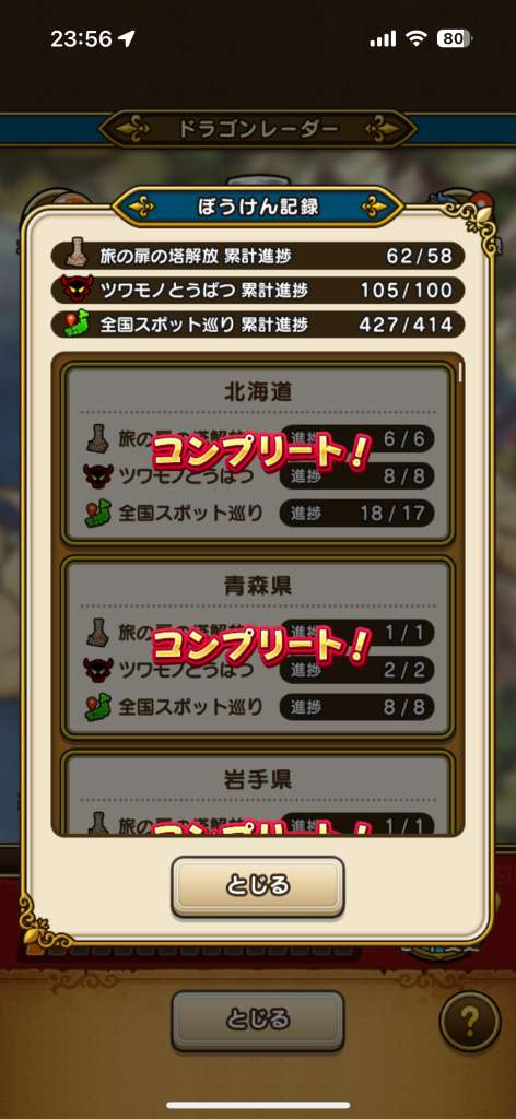以下のスポット進捗を都道府県ごとに確認できる機能が追加されました。「ドラゴンレーダー」の右上などから確認できます。機能がない方は、アプデすると表示されます。