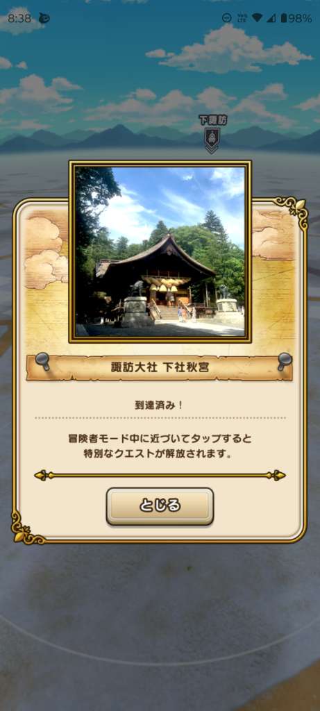 諏訪大社 下社秋宮(長野県、諏訪湖の脇)は、孫悟空モードのスポットにはないようです。