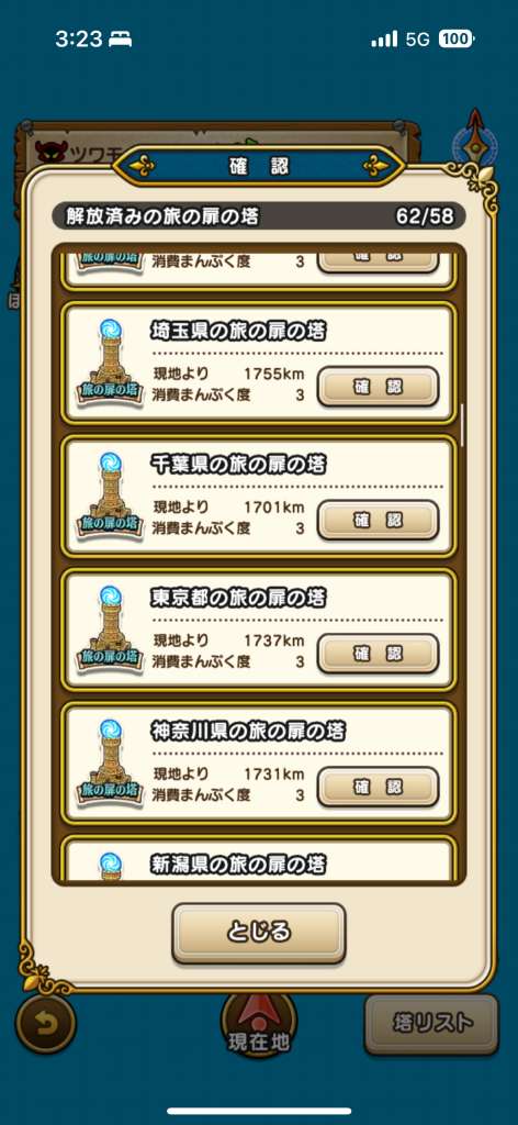 島根の隠岐と北海道の根室は最寄りの旅の扉から100km以上離れてれるのでどんなに旅の扉行き来してもスポットマーク出ないのは改善したほうがいいと思った