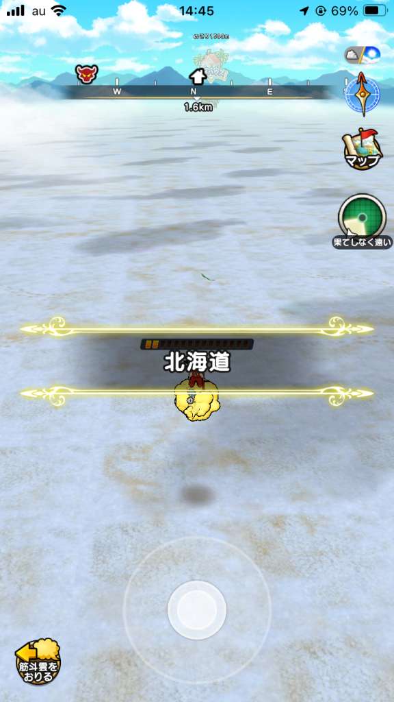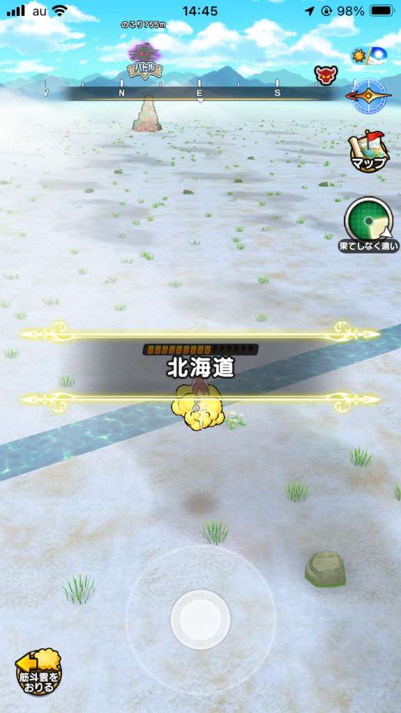 人形の吹き出しアイコン(紫)に近づいてタップすると、頼みごとが達成できます。遠くからではダメです。