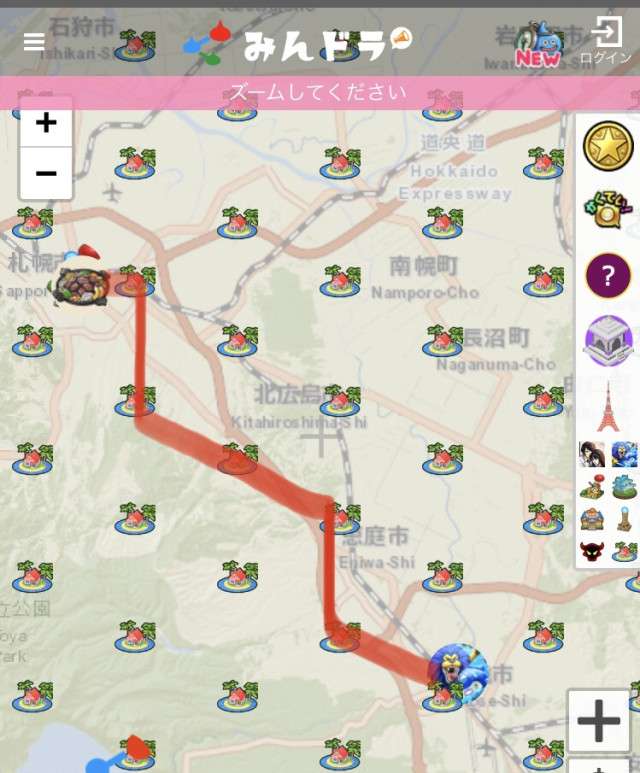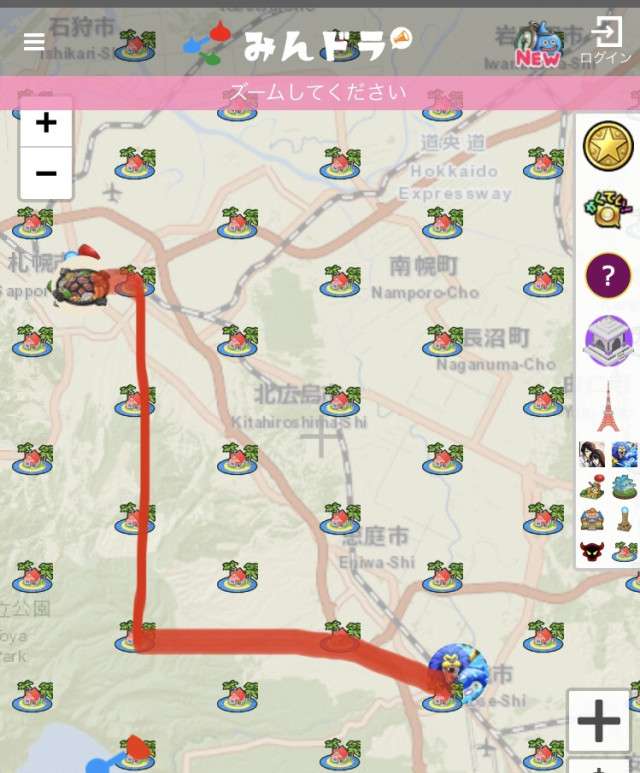 「旅の扉の塔」、「ツワモノ」、「ご当地スポット」「カメハウス(悟空モードのみ)」は、みんドラの情報共有マップで場所が確認可能です。ドラゴンボールの場所はレーダーの下の◯をタップで場所がわかります。人によって場所が異なるため、情報共有マップに対応する予定はありません。