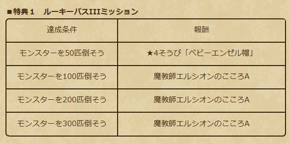 | ② | 「ベビーエンゼル帽」が入手できるとくべつミッション |