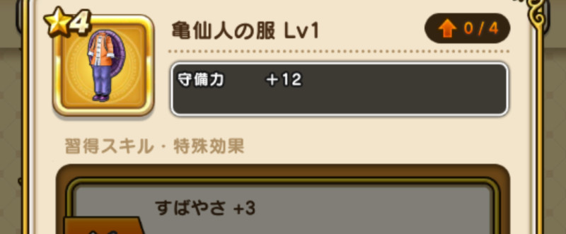 亀仙人の服の性能と習得スキル