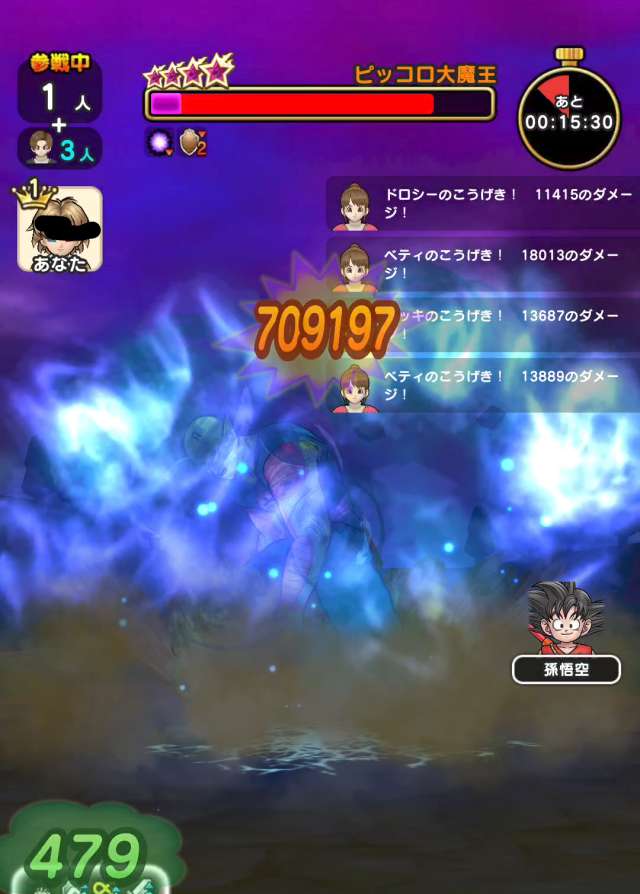 助っ人の「悟空」やお助け団がHPをほとんど削ってくれるので、弱点やHP以外の攻略情報は掲載しておりません。