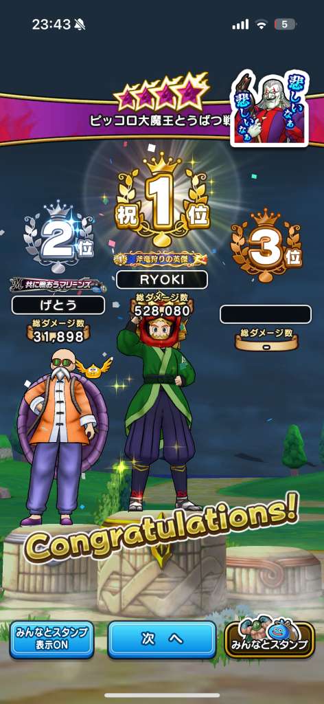 助っ人の「悟空」やお助け団がHPをほとんど削ってくれるので、弱点やHP以外の攻略情報は掲載しておりません。