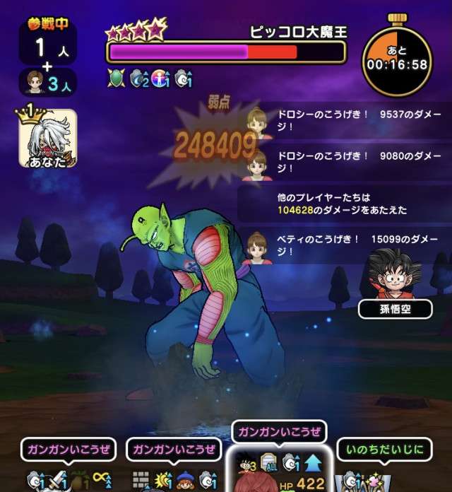 助っ人の「悟空」やお助け団がHPをほとんど削ってくれるので、弱点やHP以外の攻略情報は掲載しておりません。