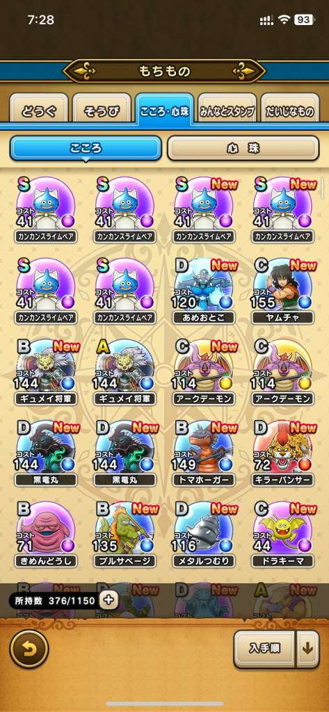 S4個作ったら、どんどんSまで合成して心珠にしちゃえばいいね。