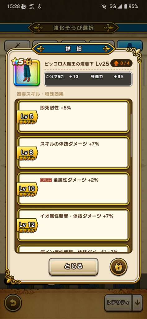 練度10スキルの斬撃・体技ダメージ+7%