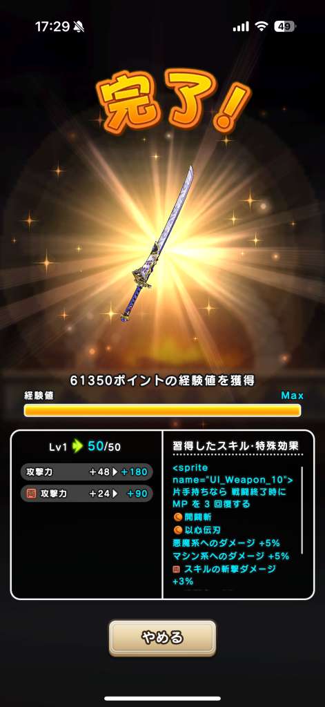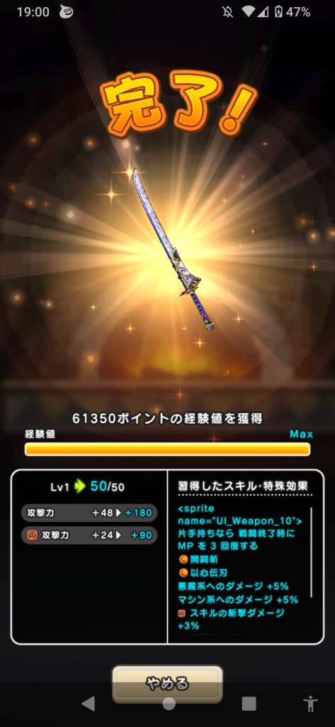 Lv10片手持ちなら 戦闘終了時にMPを3回復する【両手剣】