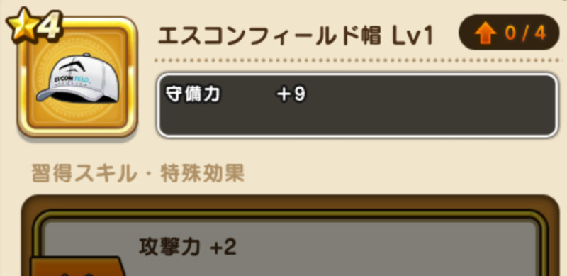 ドラクエウォークの防具「エスコンフィールド帽」の評価や習得スキル・特殊効果をまとめています。