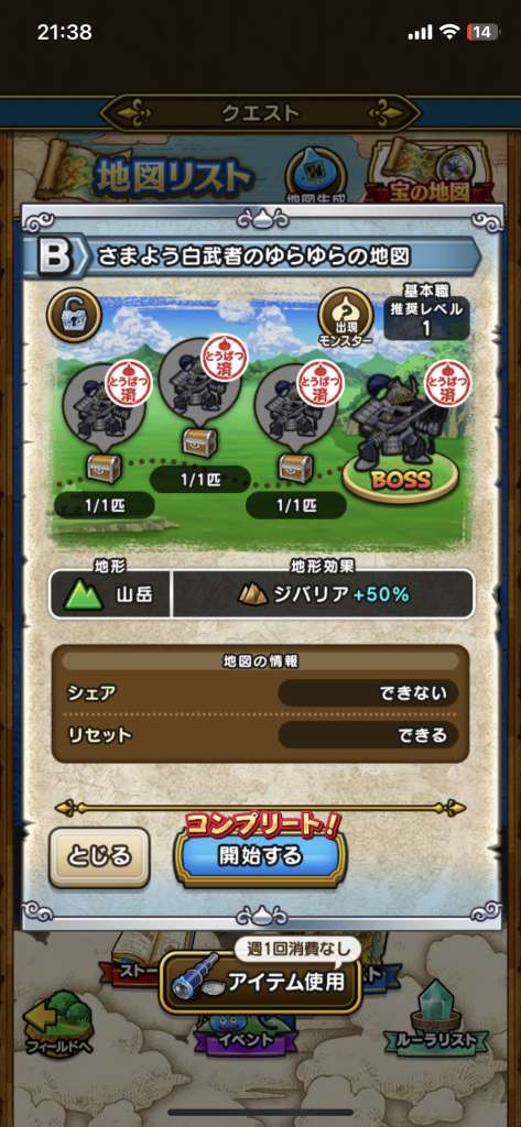 ドラクエウォークの宝の地図ミッション「さまよう白武者のゆらゆら」の入手方法と報酬(マイレージ)、こころ、出現(お宝)モンスターを掲載しています。