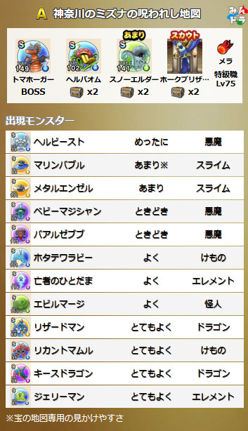 | 神奈川のミズナの呪われし地図の獲得経験値一覧 | |
