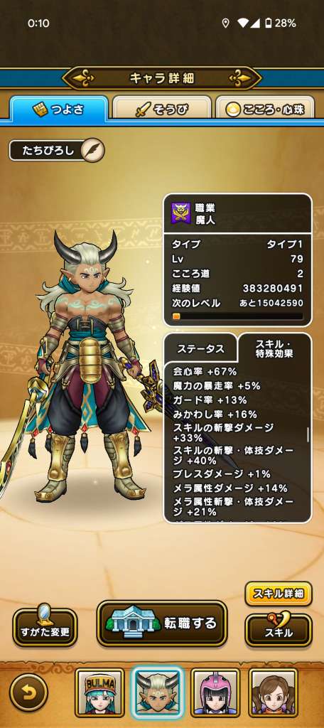 ラーミアで攻撃3段階+スキル2段階で 左の赤鬼丸に会心1発あたり65000