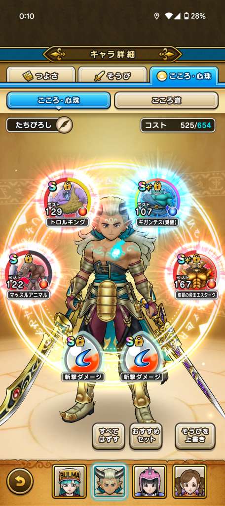 武器スキルの行をタップすると、おすすめのこころセットを確認できます