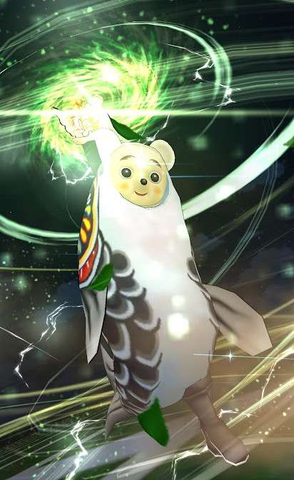 ケキちゃん、当たったので使用してみましたが、相手に投げつけるのではなくて、ケキちゃんと一緒に相手に全体かまいたちみたいな攻撃を繰り出すモーションでした…てっきりケキちゃんが、グルグル回転しながら全体に特攻するのかと思ってました…残念。(^_^;)