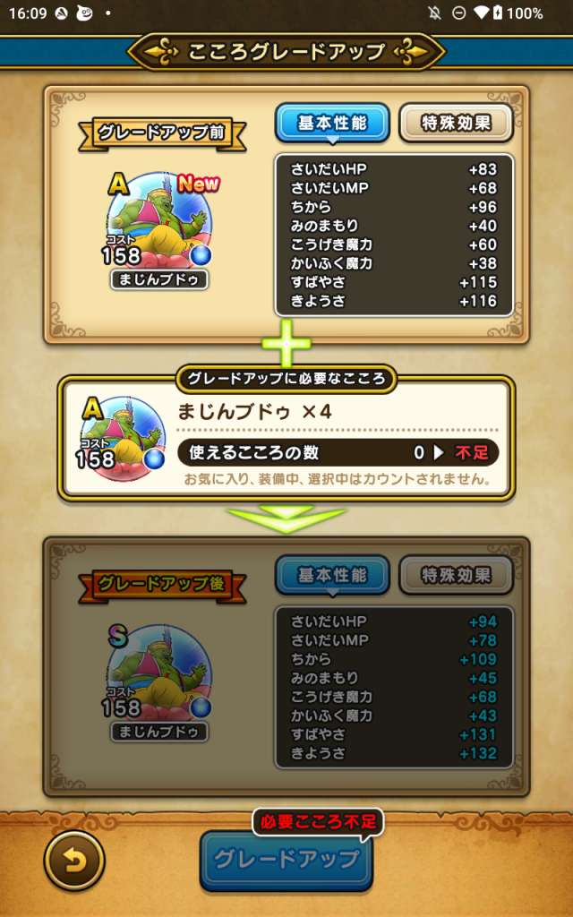 ドラクエウォークの「まじんブドゥのこころ」の性能・ステータス順位、必要個数を掲載!心珠ポイントへの交換効率や出現場所などもまとめていますので参考にしてください。