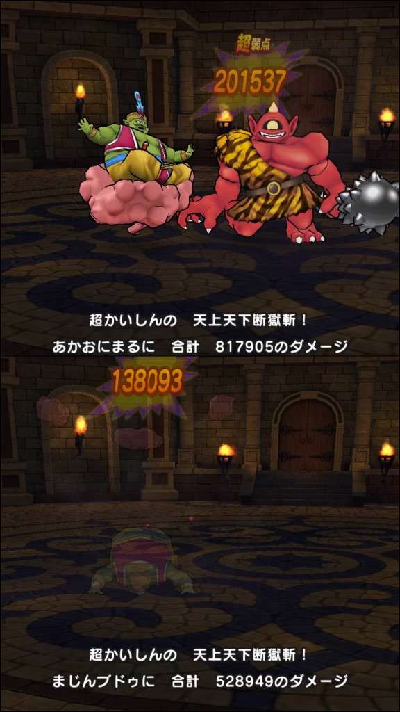 ザオラル使ってくるってあったから赤鬼倒した後の短期決戦で根絶やし使ったんだけど、そのダメをはるかに超えるかめはめ波。わくわくレベルMAXバイシ二段階だけでダメ200000オーバーを叩き出してくれて無事討伐完了