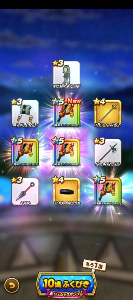 マイレージと配布で武器2頭1下1!ジェム温存できた!微妙だっただけに良かったぁ