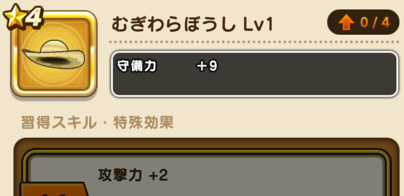 ドラクエウォークの防具「むぎわらぼうし」の評価や習得スキル・特殊効果をまとめています。
