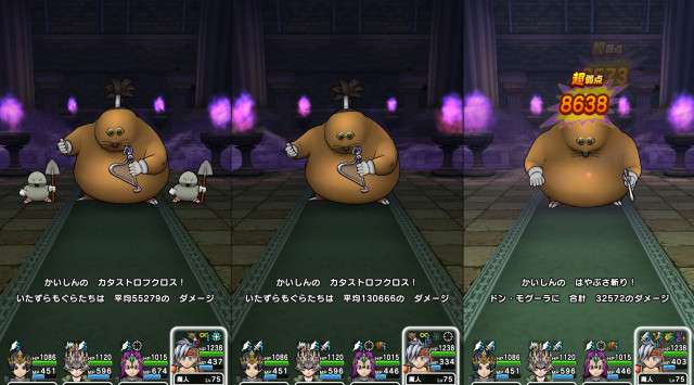 八竜剣ありでフルオートにする場合は2ターン目に八竜剣が動く前にいたずらモグラを倒しておけばドンをDS∞で確殺するようになるので初ターンに一回殴られる2ターン攻略で終わる。
