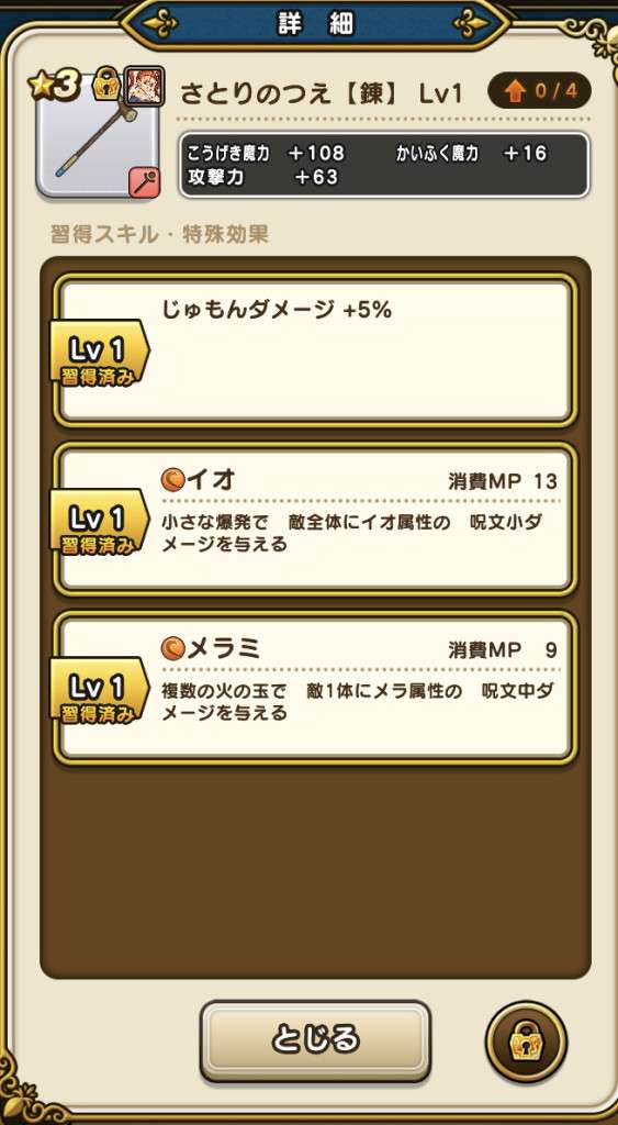 防具はとにかく数を作って厳選していった方が良さそうなので、ゼシカ用の呪文ダメアップ・属性ダメアップの星4以上が揃うまではDで作った方が良いかもしれない。