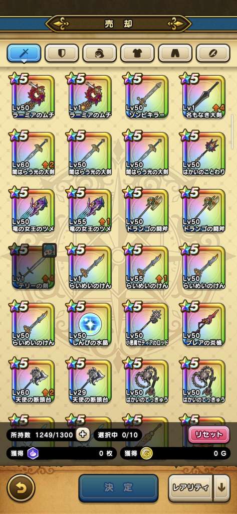 • 売却した武器、イベントパーティの初期装備は対象外