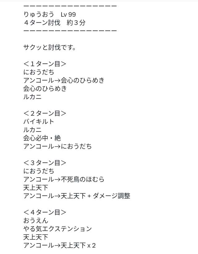 | 2 | (何でもOK) 残1ターン | (何でもOK) | 会心必中のかまえ 残1ターン |