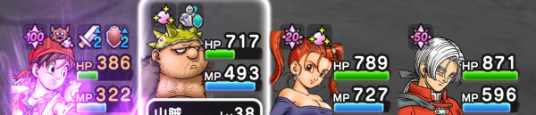 エイトは会心必中・絶。3人のうち一人は仁王立ちで、他の2人はテンションエール(対エイト)、ピオラ(対エイト)、マヌーサなどで支援。