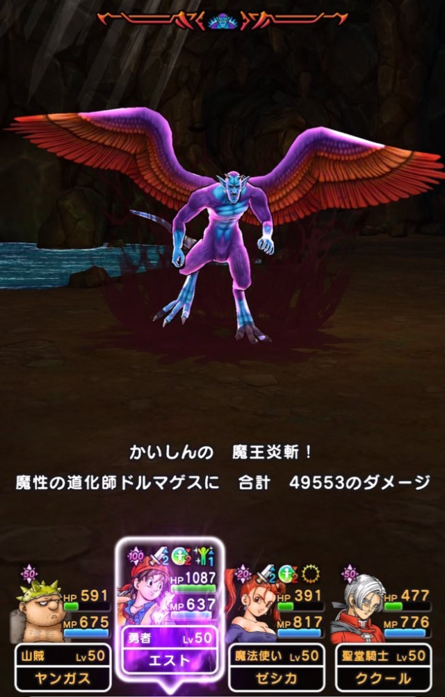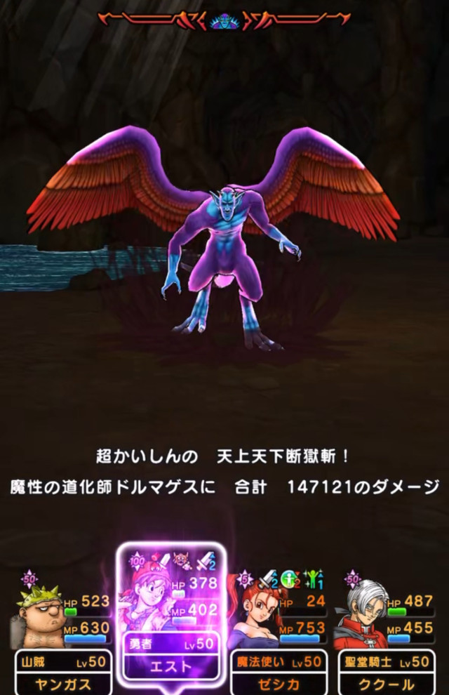 バフ剥がしで必要なヤンガスが石化したら浄化で回復か、テンション上がりきらない場合やり直し