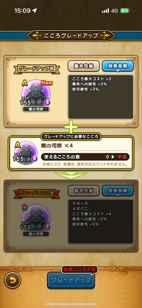 闇の司祭のこころSの性能と必要個数