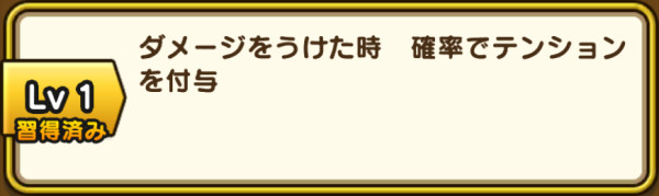 | Lv1 | テンションスイッチ / 消費MP 5 まれに自身のテンションを1段階上げる 最大4段階まで上昇するが 段階に応じて成功しづらくなる |