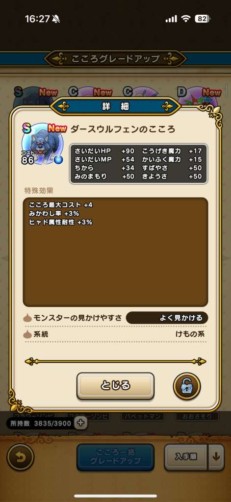 こころ確定/高確率巡りをするほか、大魔導士のウォーカーズスキル+週末ReWALKスポットを利用する手もあります。めったに枠の出現率を上昇+こころドロップ率アップで落としやすくする方法です。