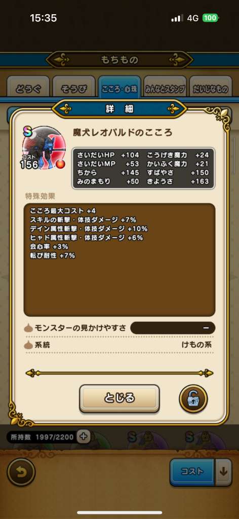 魔犬レオパルドのこころ性能